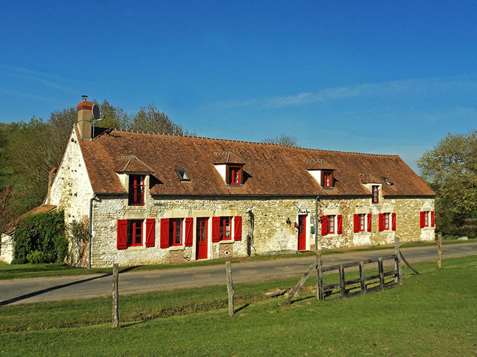 Cette demeure est une ancienne fermette et propriété familiale, d'architecture rurale de type longère, entièrement rénovée pour lui redonner son charme d'antan : poutres apparentes, four à pain, murs de briques et de pierre, mobilier ancien... A l'extérieur, vous pourrez profiter de la terrasse aménagée, dominant un grand jardin fleuri, partiellement boisé et planté d'arbres fruitiers avec un coin potager. Un parking privé est à votre disposition.