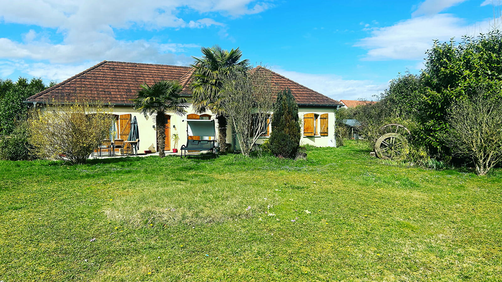 Profitez en famille ou entre amis de cette maison de plain pied, au calme, à la campagne. Salon-séjour avec cuisine ouverte totalement équipée, 4 grandes chambres, une salle de bain avec douche et baignoire. Terrain clôturé de 3000m². Terrasse avec mobilier de jardin.